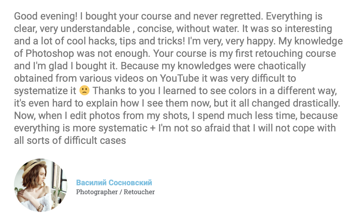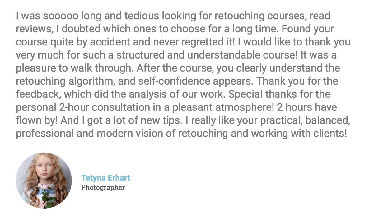 Result – you know all stages of retouching and their instruments, you adjust Photoshop and panels, know how to “process” RAW files